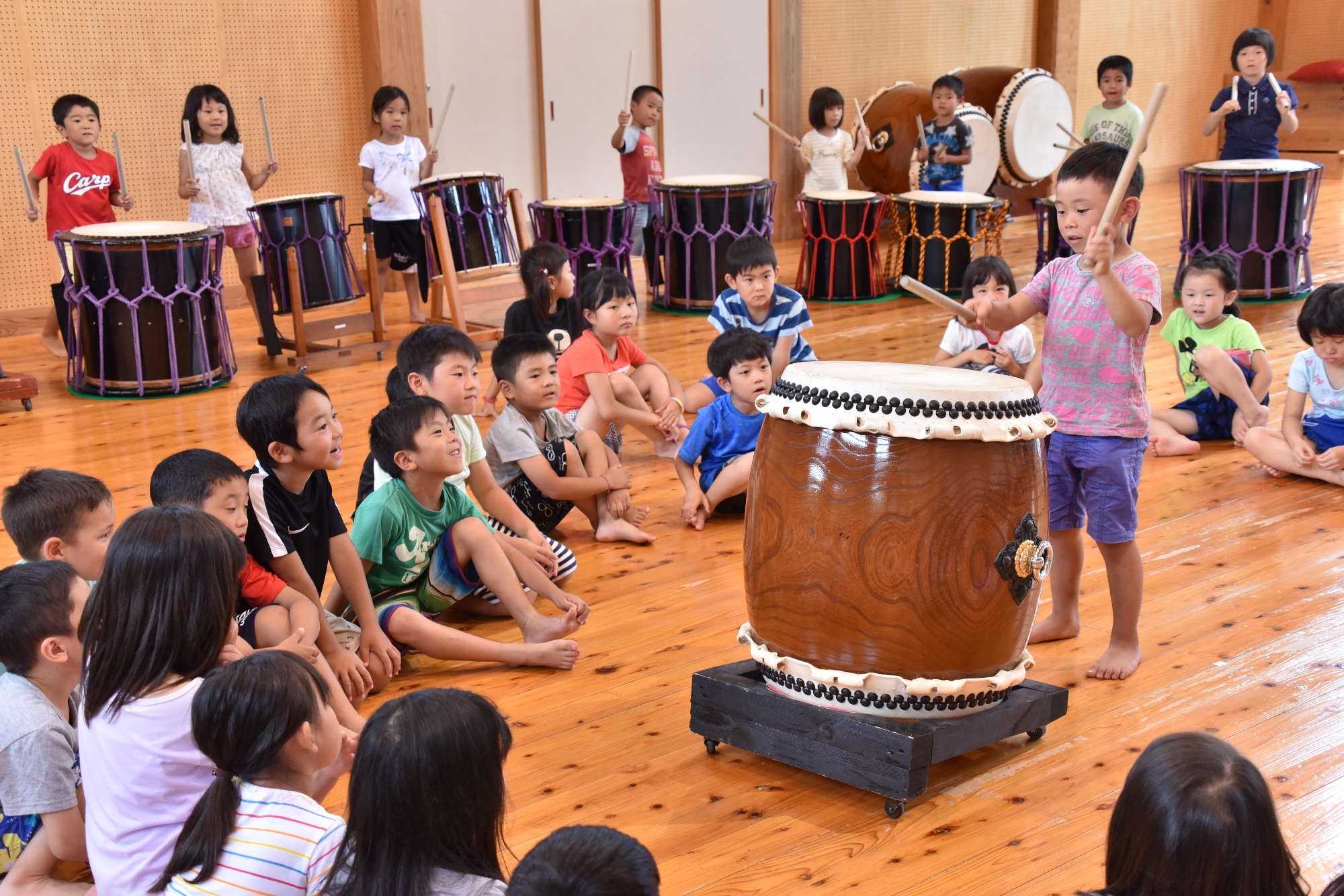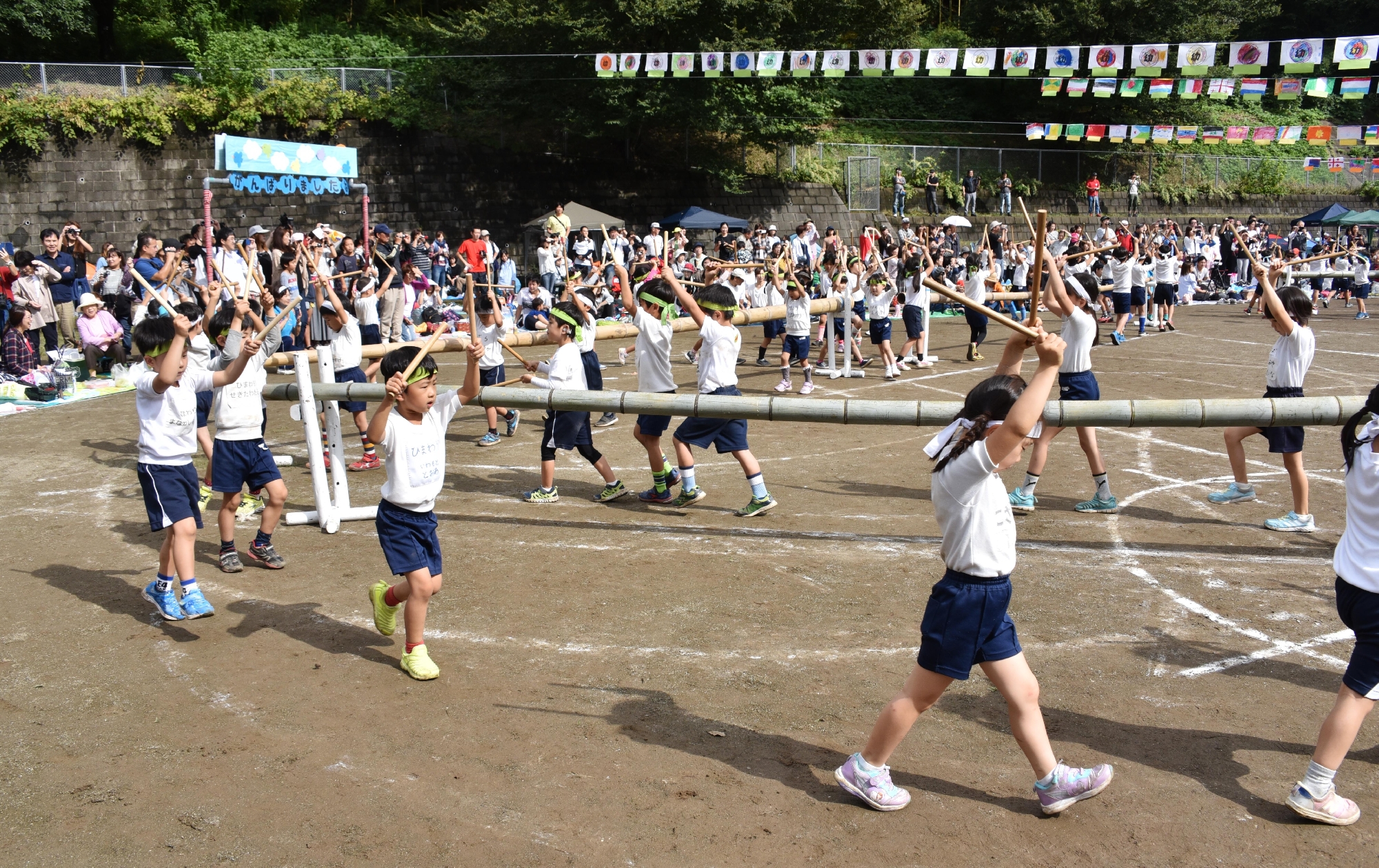From Nenchu grade (K2), we start to have apparatus gymnastics and physical exercises such as ball playing to learn rules to play as a group.
