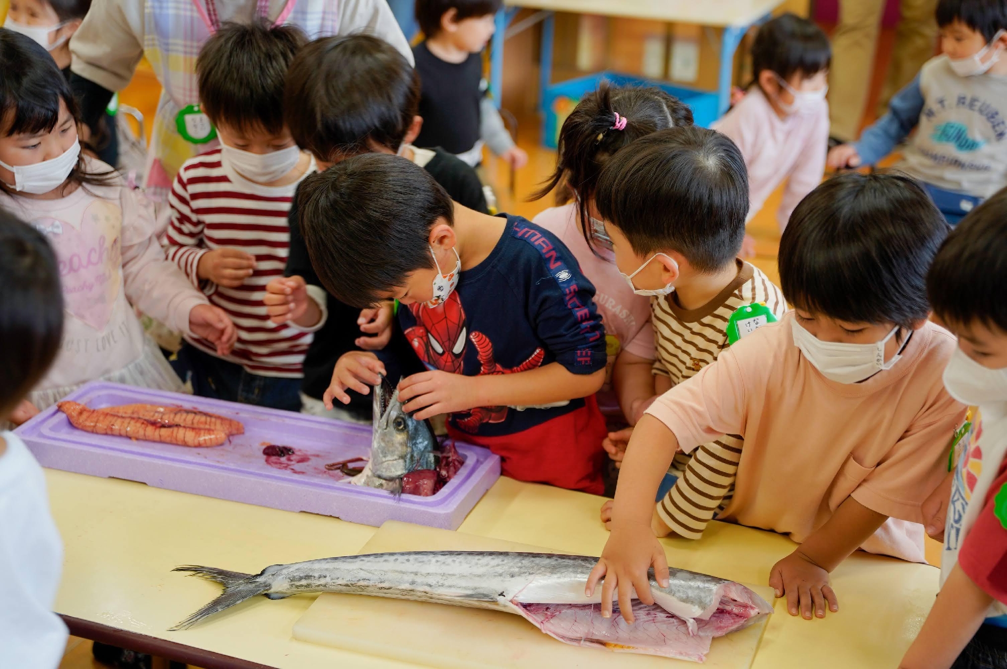 At Kobato, we take spontaneous play (inside and outside free play) which comes from children's natural curiosity and enthusiasm important, and taking a good balance with the regular classes for active and enthusiastic education and care. Main activity of children’s everyday life is to play. Children grow body and soul through the experience of free play; the relationships with friends, exposing to the outside air, and moving bodies. Knowledge, emotion, mind, and social skills, a lot of the living skills are developed through plays.