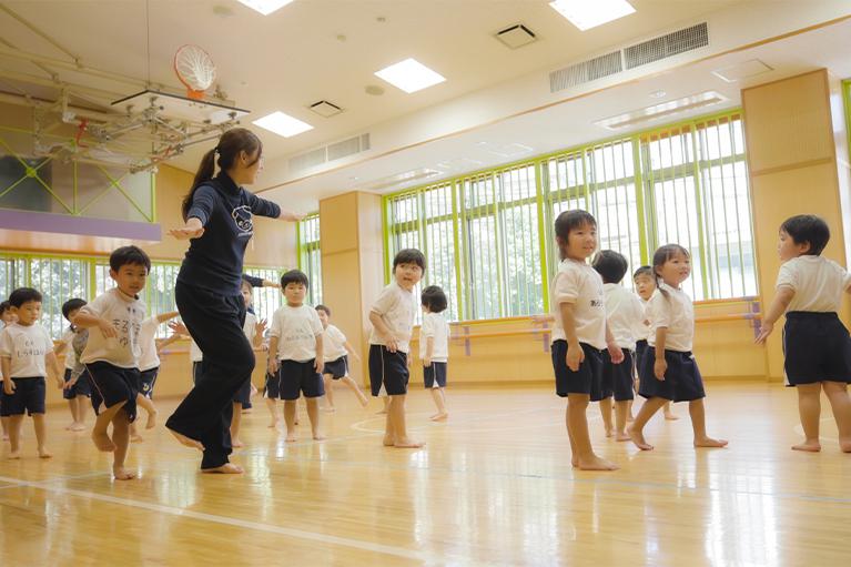 また、お友達と気持ちを合わせて一緒に動いていくことによって、相手を思いやる力やコミュニケーション力も育成されます。