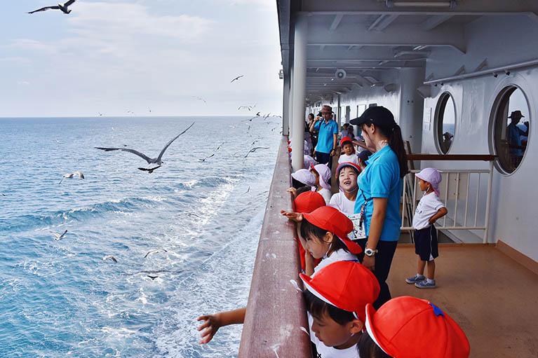 毎年夏休み(7月後半)に、年長クラスと卒園児の小学生の子どもたちだけで佐渡島に行きます。めざすは佐渡の「メルヘンこばと」。3泊4日の大旅行!町田こばと幼稚園では年少クラスから、保護者の付き添いなしで遠足に行くなどして経験を重ねていきます。